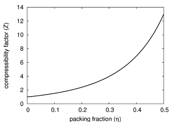 The Carnahan-Starling equation of state is not applicable for packing fractions greater than 0.55 [2].