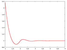 The following are a series of plots of the hard sphere radial distribution function [5] shown for different values of the number density . The horizontal axis is in units of where is set to be 1. Click on image of interest to see a larger view.