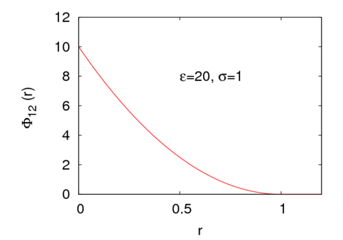 where is the intermolecular pair potential, is the distance between site 1 and site 2. represents a length scale and an energy. For example, for the potential looks like